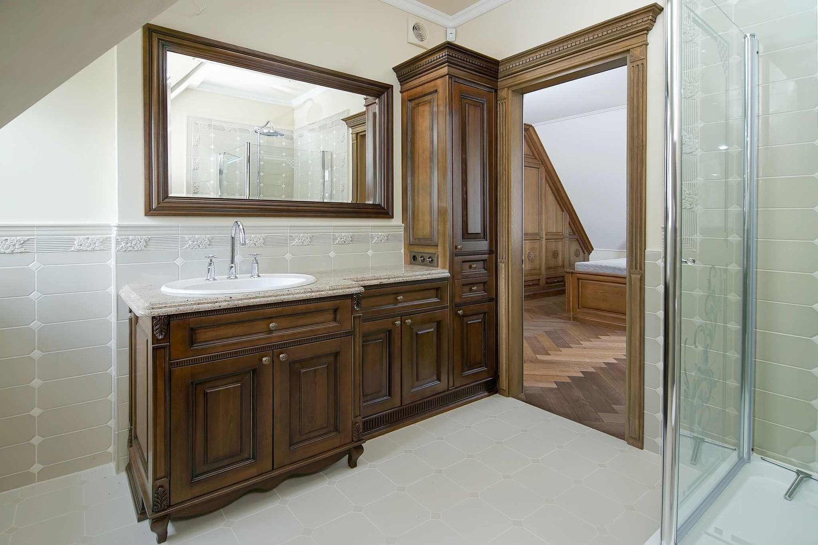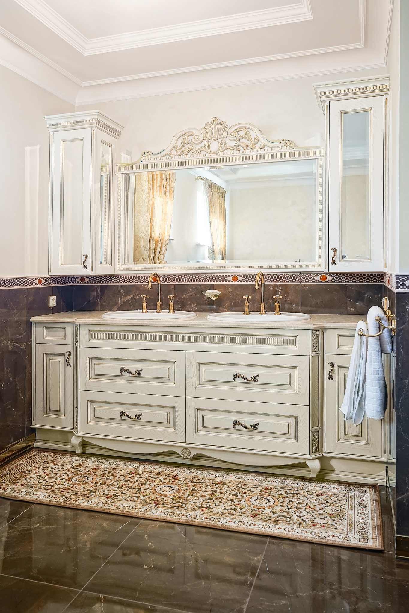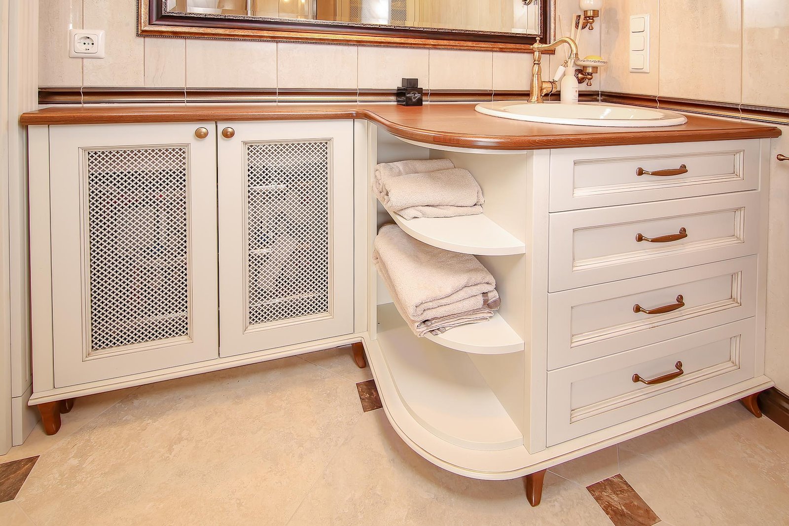 In the bathroom, it is recommended to install wooden bathroom cabinets to create a feeling of lightness and grace. Wooden cabinets can be made in a wide range of shapes and sizes, and decorated with beautiful carvings. Wooden cabinets in the bathroom will not only create a cosy atmosphere, but also help to keep the bathroom clean and tidy.