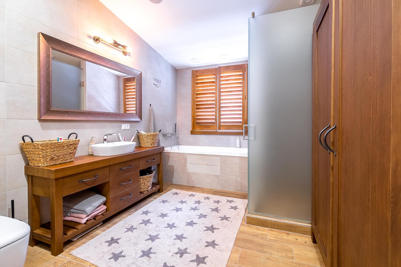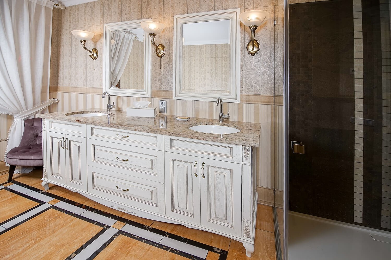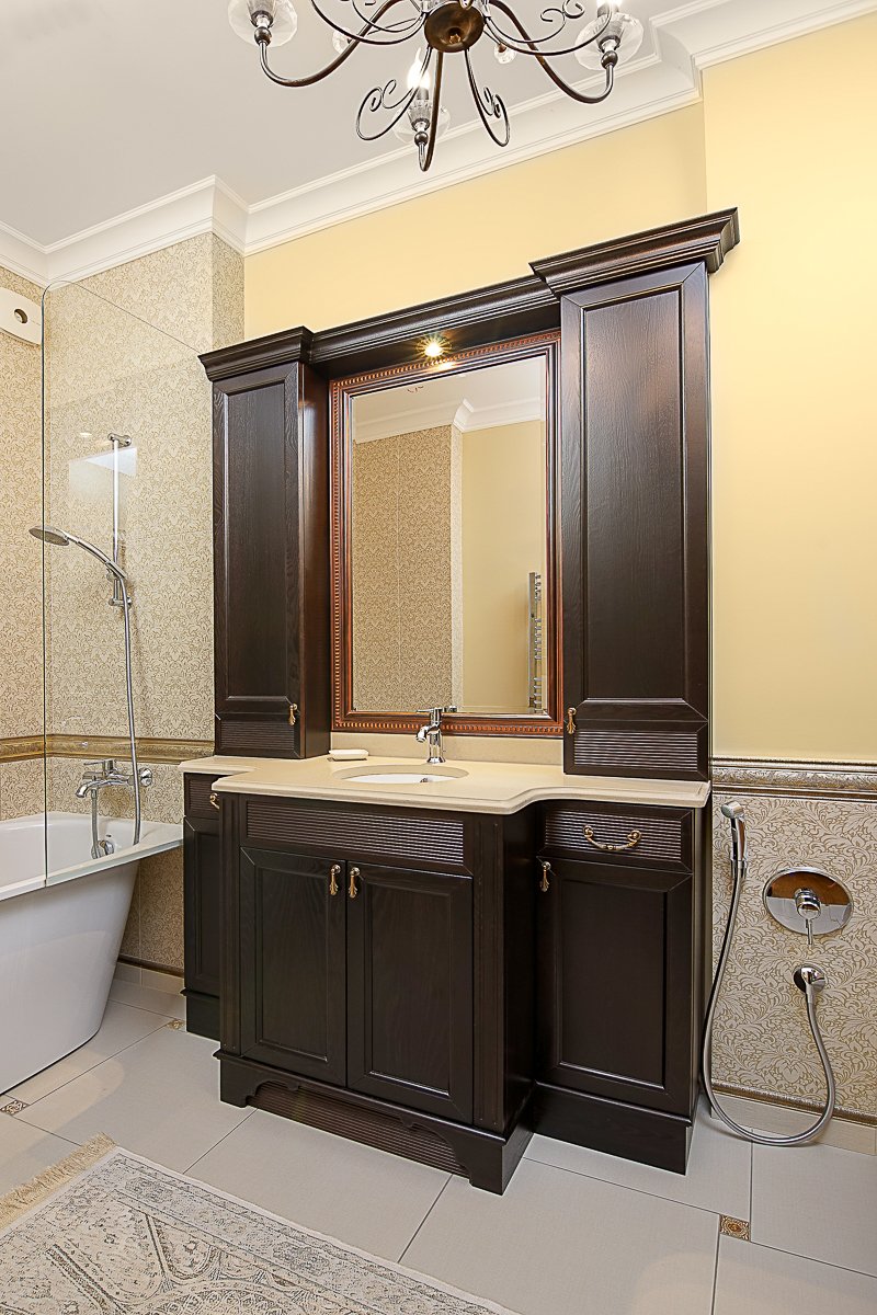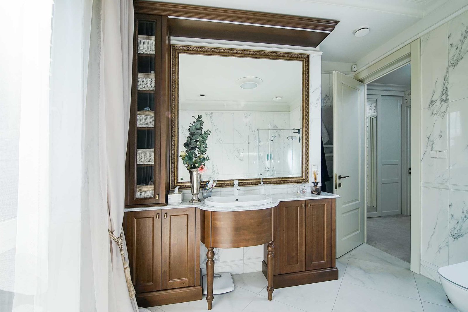 In the bathroom, it is recommended to install wooden bathroom cabinets to create a feeling of lightness and grace. Wooden cabinets can be made in a wide range of shapes and sizes, and decorated with beautiful carvings. Wooden cabinets in the bathroom will not only create a cosy atmosphere, but also help to keep the bathroom clean and tidy.