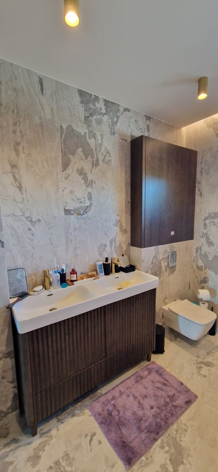 As in every home, the bathroom is constantly filled with objects of dubious necessity, which take up space and visually reduce the space. To avoid this situation, it is important to have cupboards in the bathroom, whether they are hanging, built-in under the washbasin, or placed on the side.