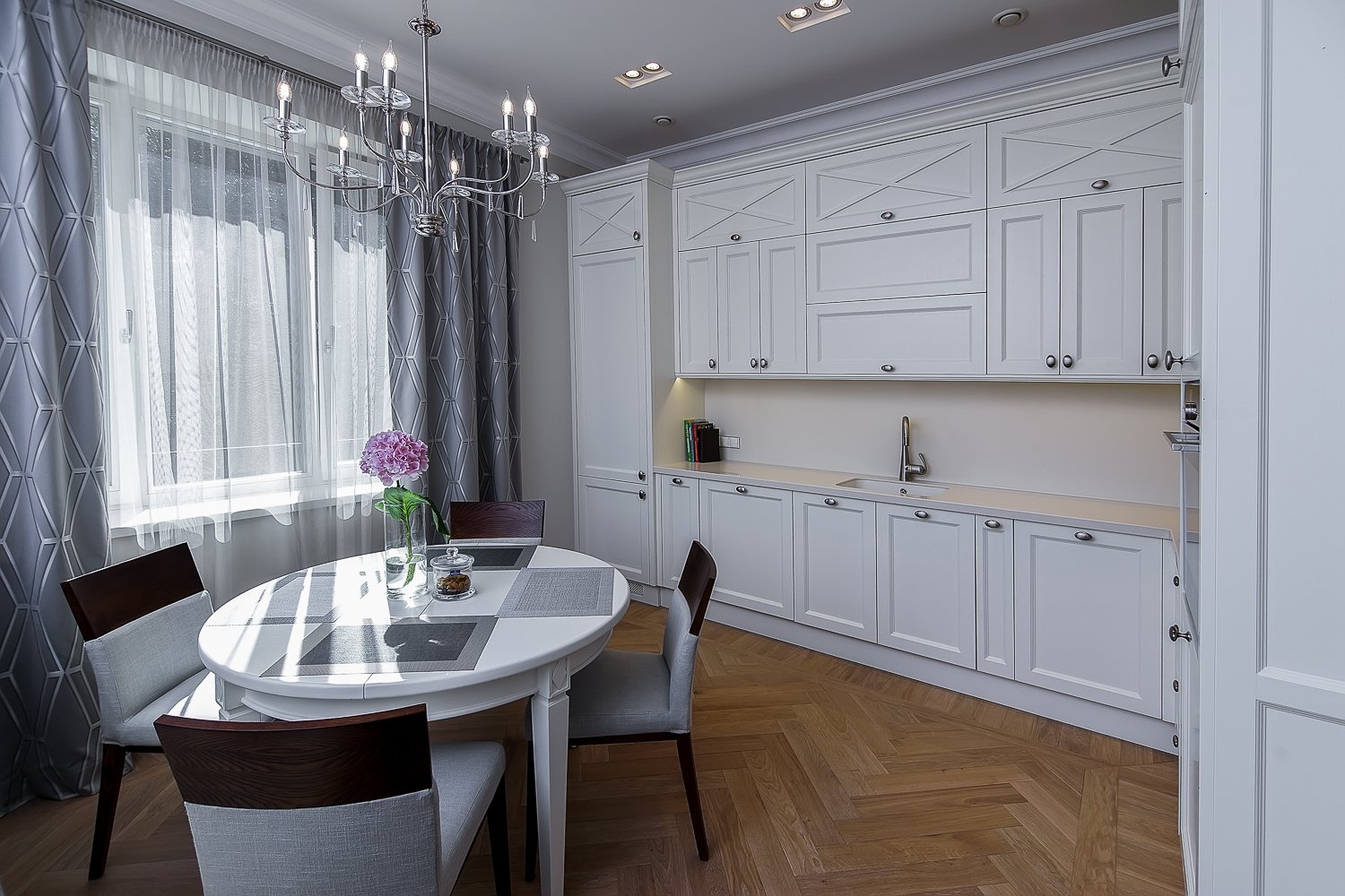 Dažna baldų planavimo problema – maža virtuvė. Tokiu atveju yra patariama baldus dėlioti „L“ raidės forma – baldai, statomi palei sienas, užtikrins ne tik laisvą judėjimą patalpoje, bet ir bus funkcionalūs, patogiai išdėstyti. Kaip žinia, virtuvėje spintelės yra neišvengiamos. Kuo mažesnė virtuvė – tuo lengvesnės ir mažesnės turėtų būti pačios spintelės. Taip pat, venkite atvirų lentynų, neuždaromų spintelių – toks vaizdas bus neestetiškas. Patogiai šeimininkauti virtuvėje galėsite tik tokiu atveju, jei spinteles pakabinsite viename aukštyje ir jos turės dureles, kurios pridengs visą spintelėse esantį turinį. Taip pat labai svarbus virtuvės akcentas – stalas. Jei galite džiaugtis erdvia virtuve, neabejotinai rinkitės didelį, patartina – medinį, stalą, prie kurio tilptų ne tik šeimos nariai, bet ir svečiai. Elegantiškas stalas ir prie jo priderintos kėdės sukurs užbaigtumo ir jaukumo jausmą. Be abejo, nepamirškite ir tinkamų šviestuvų. Dažnai apšveitimo „problema“ yra išsprendžiama pakabinant vieną bendrą šviestuvą. Tačiau toks žingsnis nėra pagirtinas – mat virtuvės interjerą atskleisite ir didesnį jaukumą sukursite panaudodami kelis atskirus šviestuvus. Štai rekomenduojama po pakabinamomis spintelėmis pritaisyti LED šviestuvus – mažos, ramios švieselės sukurs atsipalaidavimo atmosferą. Kita vertus, didesnis, bendras šviestuvas yra būtinas – tamsiuoju metų laiku norisi kuo daugiau šviesos, o prieblanda ir romantiškos švieselės ne visuomet tampa išeitimi.